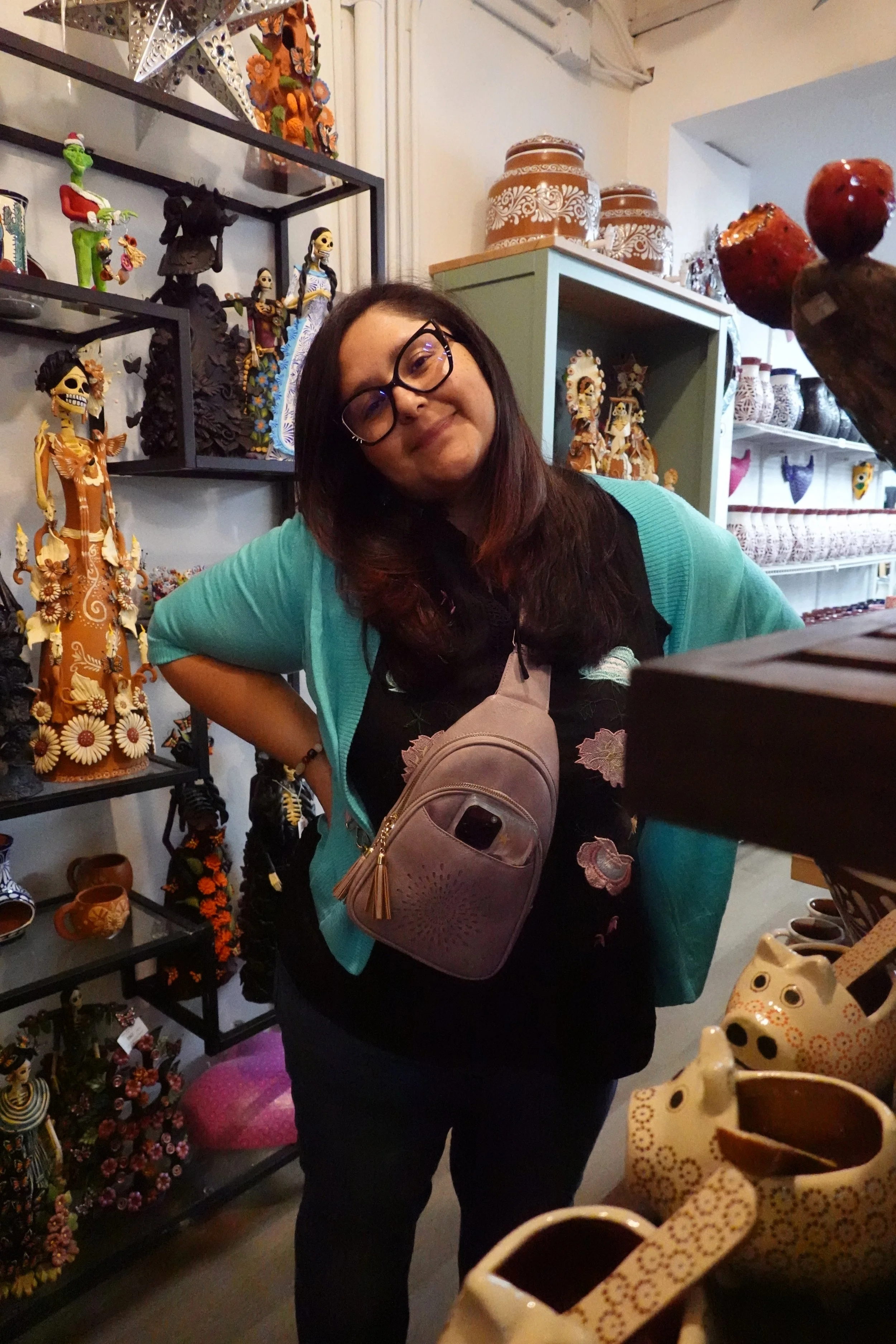 The drive was nice until we hit San Antonio where it was raining. Lucy wanted to go to this little shop that sold ceramics.